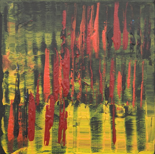 Laag over laag werken en alsmaar blijven kijken; wat is het effect van deze verf, van deze techniek, van deze kleur, op deze plek, op dit formaat doek.